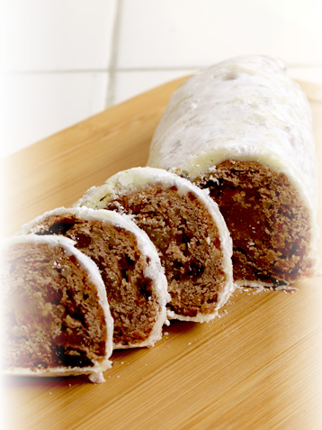 バターたっぷりの生地に、お酒に漬けこんだドライフルーツ、スパイス、を加えました。